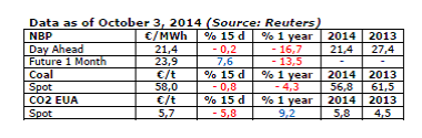 The NBP price continued its upswing, which began in July. In early October, it stood at €22/MWh ($8.1/MBtu), up from €20.9/MWh ($7.7/MBtu) in September (+20% compared to August). The price for the upcoming winter months is expected to be €25-26/MWh ($9.2-9.6/MBtu), slightly lower than anticipated a month ago. But the market is relatively nervous, as evidenced by the sudden spike of 4.6% on October 1 followed by a drop on the same order of magnitude two days later. These fluctuations reflect uncertainty about demand (due to the temperature) and the tensions surrounding the negotiations between Russia and Ukraine (the Russian proposal: 5 Gm3 over the winter at $385/1000 m3, i.e. $10.2/MBtu). The spike on October 1 thus coincides with the announcement that Russian gas deliveries to Slovakia will be halved.