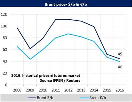 The Brent at $40-48/b in 2016 (vs. $52/b in 2015)