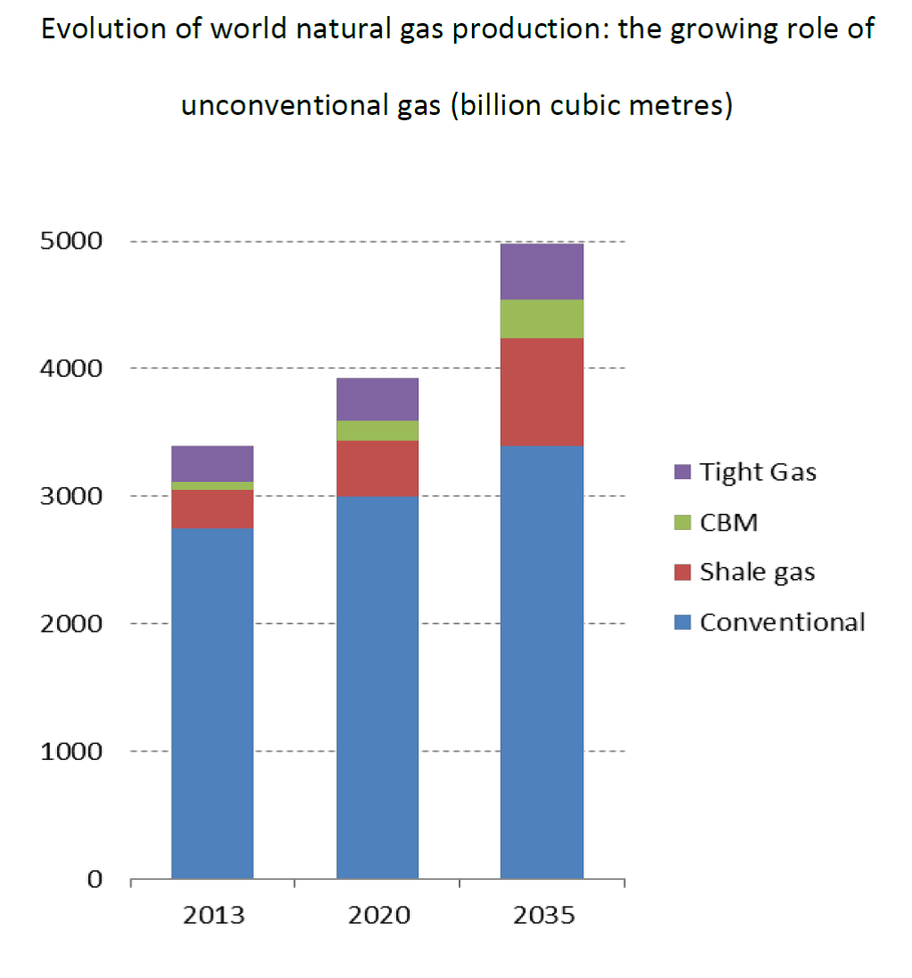 ➢ Unconventional gas will provide almost 60% of global additional supply and will account for 32% of global gas output in 2035, up from 19% in 2013
