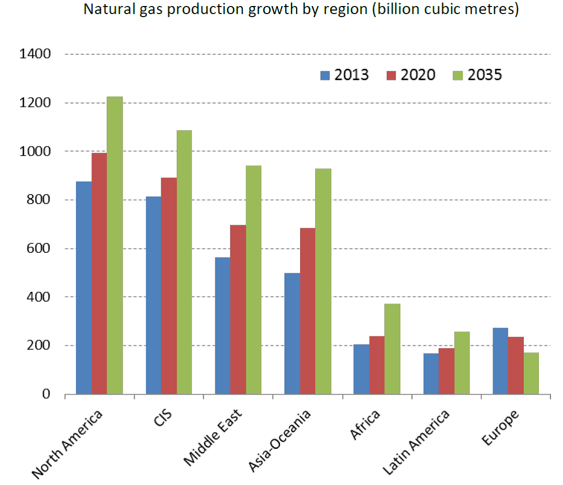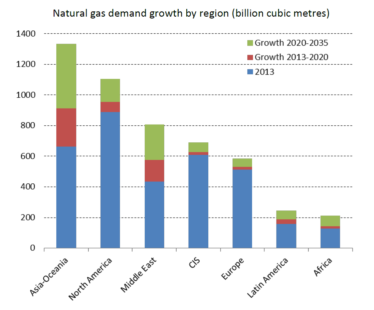 Gas demand growth is expected to remain strong to 2035, under the impulsion of the Middle East and China, where natural gas is making inroads in all consuming sectors