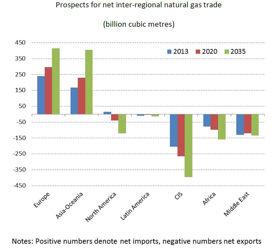 ➢ Europe and Asia’s increasing dependence on imports will drive a strong expansion of net inter-regional gas trade, expected to grow by 3.1% annually to 2035