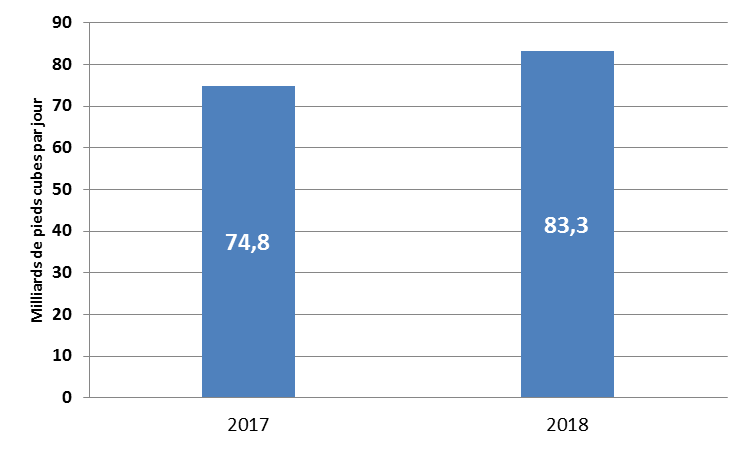 According to U.S. gas production forecasts, there will be sustained growth until 2020, trending upward from an estimated 83.3 bcm/d in 2018  to 90.2 bcm/d in 2019, then 92.2 bcm/d in 2020. Several factors are driving this uptrend, such as improved drilling efficiency and a correlative reduction in drilling and well completion costs, as well as increased gas transportation capacity serving resource-rich areas like the Appalachians or the Permian Basin.