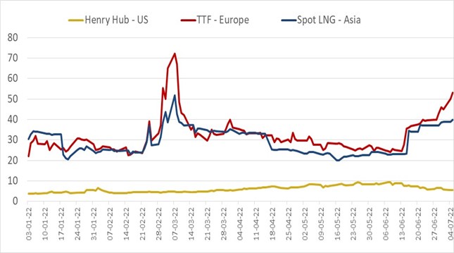 Evolution of international gas prices in the second quarter of 2022