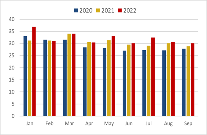 Evolution of international gas prices in the third quarter of 2022