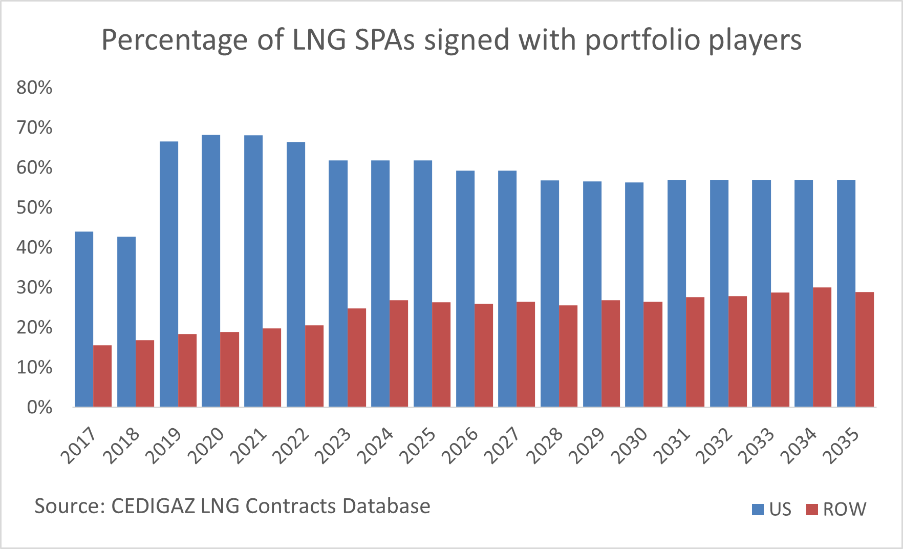Portfolio growth has become a defining feature of the LNG market. Both established players and new entrants, especially U.S. project developers, increasingly rely on portfolio players and commodity traders to secure long-term SPAs.