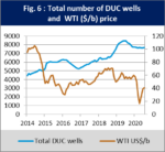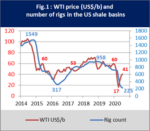 Fig.1 illustrates the correlation between the price per barrel of WTI crude and drilling activity (rig count). When the barrel price goes down, drilling activity falls within in a short lapse of time. On the other hand, when the barrel price goes up, it takes longer for drilling activity to rise again.