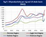 Since 2014, well productivity has seen strong improvement overall, multiplied by a factor of three (Fig.9). This can be attributed to an increase in the number of drain holes drilled and better fracturing placement. However, average basin productivity has risen more slowly since 2017 given the absence of new innovations.